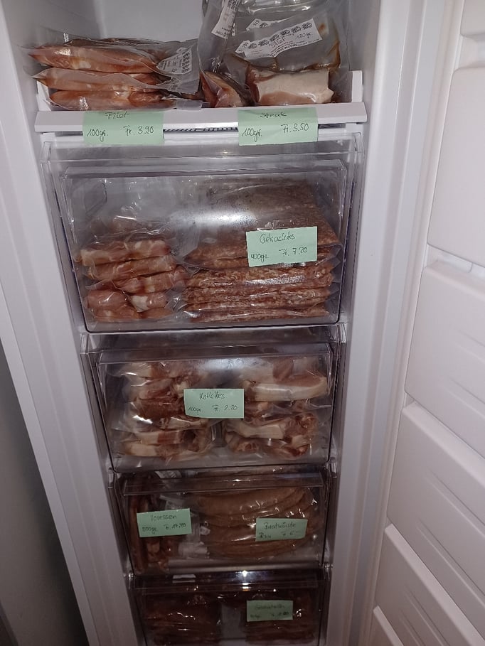 Unser Rindfleisch ist im Tiefkühler für sie bereit.